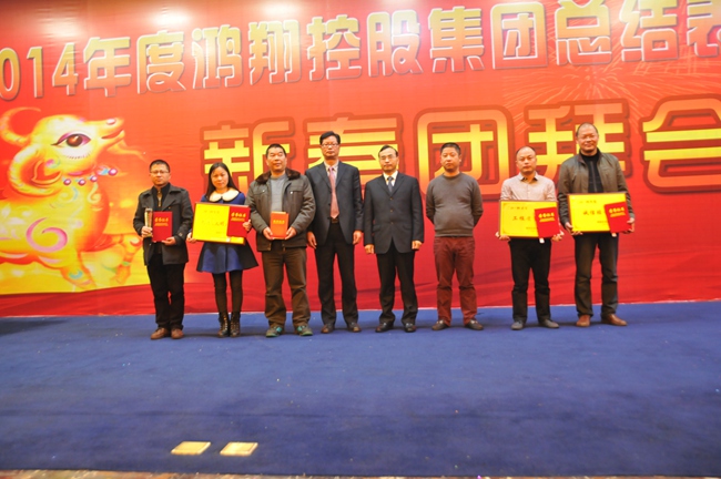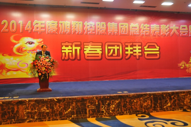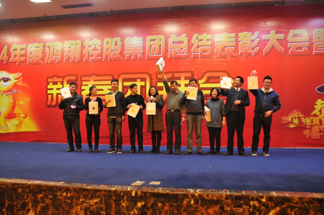 2015年2月9日,2014年度鸿翔控股集团总结表彰大会暨新春团拜会在海洲大饭店隆重召开。控股集团各主要领导及成员企业中层以上干部和先进员工代表出席会议,会议由控股集团执行总裁郭新峰主持,会议共分为六个议程。 首先由控股集团执行董事宋浙安同志作《2014年度控股集团工作总结报告》,报告回顾了鸿翔集团过去一年所做的工作,肯定了成绩,同时也指出了存在的不足,提出了新一年的工作目标和任务。控股集团党委书记、副总裁徐明华同志宣读2014年度表彰决定,对集团作出重要贡献的员工和集体给予表彰,包括2014年度特别贡献奖、勇于担当奖、先进代表等上台领奖。随后由陈华、姚琴豪等三名同志作了大会交流发言。接下来是控股集团董事长、总裁姚岳良讲话,姚董强调2014年过去了,新的一年又来临了,新的一年有困难、有挑战,但也有希望和机遇,为了争取新一年的胜利,鸿翔要着重抓好各方面工作。最后由海宁市副市长曹毅讲话,曹市长对鸿翔一年来的工作成绩表示肯定,又对新一年提出了新的期望。 集团各部门、成员企业领导班子及骨干共计500余人参加了此次控股集团新春团拜会。