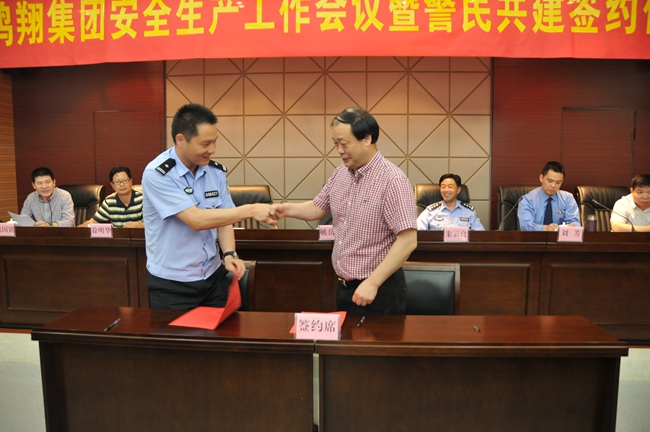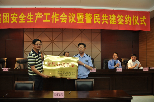 5月28日,鸿翔控股集团围绕企业经营管理中心工作稳中求进,提质增效这一目标,进一步强化企业的安全生产和综合治理的意识和措施,增强 “红线”意识和“底线”思维,明确任务,落实措施,做好集团安全生产、综合治理工作,确保安全生产形势稳定,经集团领导研究决定,召开“鸿翔集团安全生产工作暨警民共建签约”会议。嘉兴市人民检察院第四党支部委员、公诉处检察员刘芳,中共海洲街道党委委员、海洲派出所所长叶球飞,海洲派出所教导员朱云良,集团总裁姚岳良,副总裁、党委书记徐明华等领导出席会议,控股集团副总裁、集团安委会主任姚国铭主持会议。 会上姚董与叶球飞所长签订了《警民共建协议书》,朱云良教导员为鸿翔集团授牌,徐总代表集团接牌。结为警民共建单位,是深入开展平安海宁、法制海宁的建设,维护社会大局稳定和企业的正常工作秩序,密切警民关系,做到“同呼吸、共命运、心连心”,在“智慧党建”、“青春党建”上双方创新互动;经常开展法制宣传和安全教育,提高员工守法的自觉性,增强企业安全防范的意识;经常与公安机关交流、沟通情况,排摸治安苗头和内部安保薄弱环节,开展平安工地、平安大楼的创建,检查督促施工项目部现场安全防范措施的落实,努力实现安全保卫工作联建、联防、联动;加强双方的相互支持与合作,增进警民共建情谊。 会上徐总代表集团领导班子讲话,他说,2015年是完成“十二五”发展目标的收官之年,也是全面深化改革的关键之年。集团要深化“两个转变”,将面临更为严峻的形势,具体表现为安全法制环境趋于严格,对安全生产、综治工作提出更高要求,如建筑项目部点多面广,文化产业上大型活动及商场、市场节假日的人员聚集,皮毛染色中的排污、环保安全等方面。他强调:面对严峻的安全生产、综治工作形势,在当前新常态下,安全是企业最大的效益,必须牢固树立安全意识、安全责任意识,查找安全管理薄弱环节;企业负责人要切实抓好安全,做到横向到边、纵向到底,不留死角;创新安全检查手段,对人防、物防、技防实施有效管控;增强法律意识,开展普法教育,排查矛盾纠纷苗头,早发现、早报告、早介入,及时有效控制事态。 会议要求,面对新形势、新任务,安全生产工作必须立足深化管控新起点,成员企业签订安全生产责任书及综合治理责任书。同事要充分认识安全生产工作的重要性,采取具体措施,明确分级责任,更加扎实有效推进安全生产各项工作,确保集团安全生产形势持续稳定。