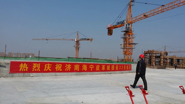 4月15日上午10点18分,由浙江鸿翔建设集团有限公司总承包新建打造的又一艘“皮革航母”在济南泉城着陆了,此时蔚蓝的晴空中鞭炮齐鸣,像泉水一样涌遍整个济南泉城,济南海宁皮革城进行了隆重的封顶仪式。封顶仪式上,济南市各级政府有关领导亲临登场致辞,济南海宁皮革城有限公司董事长等领导层到场讲话,鸿翔建设集团副总裁章峰登场发言,另有各大媒体争相拍摄报道,包括中央人民广播电台、新华社、山东电视台新闻中心、山东广播交通频道、大众网、齐鲁晚报、济南日报、新浪山东等。 济南海宁皮革城是海宁皮革城有限公司投资开发的又一大型皮革市场,我鸿翔公司于去年10月20日正式开工建设,拟于今年9月28日交付投入使用。 济南海宁皮革城市场位于济南市槐荫区,东临二环西路、南临美里路、北靠高速绕城北环线,距离济南西站约6公里,距离泉城广场约11公里。商业综合体为地上4层,地下1层,采用框架-剪力墙结构,建筑屋顶高度约为22.2m,外围结构为特殊弧扇形造型,南北区段之间连接有钢架连廊,外部内部结构特别复杂,总建筑面积约为194193㎡,其中地下为人防工程建筑面积40979.9㎡。基础采用钢筋混凝土管桩,基础挖土方工程量约有25万m³,工程总需制作绑扎钢筋量16000吨,需浇筑梁板柱混凝土约10万m³。如此庞大且造型复杂的单体建筑,目前已圆满的比计划提前了33天封顶,为鸿翔建设集团公司创造了又一项奇迹,也为接下去的砌体、二次结构及装饰施工争取到了更多宝贵时间。 该项目工程量庞大结构设计造型复杂,施工难度重大,工期异常紧迫,又是鸿翔公司初次进驻济南施工,在诸多困难之下,鸿翔公司不畏艰难迎刃而上,为保证工程由始至终按计划顺利进行,鸿翔建设集团公司决策层遴选有多次打造皮革航母经验的章雪洲项目部投入建设(在此之前已成功圆满打造过成都海宁皮革城、哈尔滨海宁皮革城)。在与总公司派驻的技术骨干紧密配合下,带领他的精锐之师进驻泉城。在综合考虑工程的特殊性时,增加了技术管理人员及施工人员的投入,加大了物资的投入,精心科学的组织施工,在严把质量和安全、尤其是济南对扬尘及安全文明要求特别严格关的同时,加快施工进度,将工程进度精确细化到每一周每一天每一小时。现场投入施工人员最多时超过3000人。因抢进度的需要,模板、钢管均来不及翻转使用,为避免因周转材料的不足影响施工进度,特增加双倍量的模板、钢管的投入。为了提高劳动效率,加大机械化施工力度,特别是基础土方开挖施工时,投入挖机数十台,车辆上百辆。现场布置塔吊11台,保证全面覆盖不留死角,每台塔吊配塔吊司机3人进行倒班,塔吊保证24小时不停运作。为了保证不因为材料供应不及时而导致延误进度,在工程一开始就精挑细选的选择了多家有实力、有信誉的供应商供货,确保了大量的钢筋及混凝土能及时供应到现场。由于工程平面面积大,混凝土泵车无法全部够到浇筑部位,现场又采取布置多条泵管来浇筑,保证了混凝土浇筑的及时、到位。鸿翔公司还采取有效、科学的管理,分南北两个区段,并且按成倍节拍流水作业的施工方式,不耽误每一道工序的施工,无论天气刮风下雨或酷暑严寒坚持24小时倒班奋战,坚持做到每天24小时不停的进行混凝土浇筑。 “鸿翔精神传千里,勇于拼搏创辉煌。”每一个鸿翔人始终不怕艰险,怀着必胜的信念。终于在近5个月的辛苦努力下,超前33天完成皮革航母的结构封顶,鸿翔人传承了一个又一个佳话。泉城人们投来羡慕的眼光、惊讶的声音、高度的赞誉,在这短短的时间内能完成这样一艘大型皮革航母的封顶确是一项奇迹。泉城领导和人民对鸿翔公司投来了肯定的一票,也得到了皮革城有限公司领导对我鸿翔公司多年来不容置疑的认可,这是我们全体鸿翔人的骄傲。接下来还有更大的工作量需要去完成,我们相信鸿翔人有信心更有能力于今年9月28日前顺利地圆满完成这项辉煌的工程,达到全面的胜利。 千里之外,美丽泉城,鸿翔人用自己的汗水和泪水打造起了这一艘又一艘“皮革航母”,更筑起了浙江鸿翔建设集团有限公司永久的荣誉。