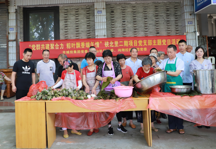 与会领导为党支部全体党员赠送了红色学习礼包。成立仪式后,项目党支部开展了第一次主题党日活动——“党群共建聚合力,粽叶飘香端午情”