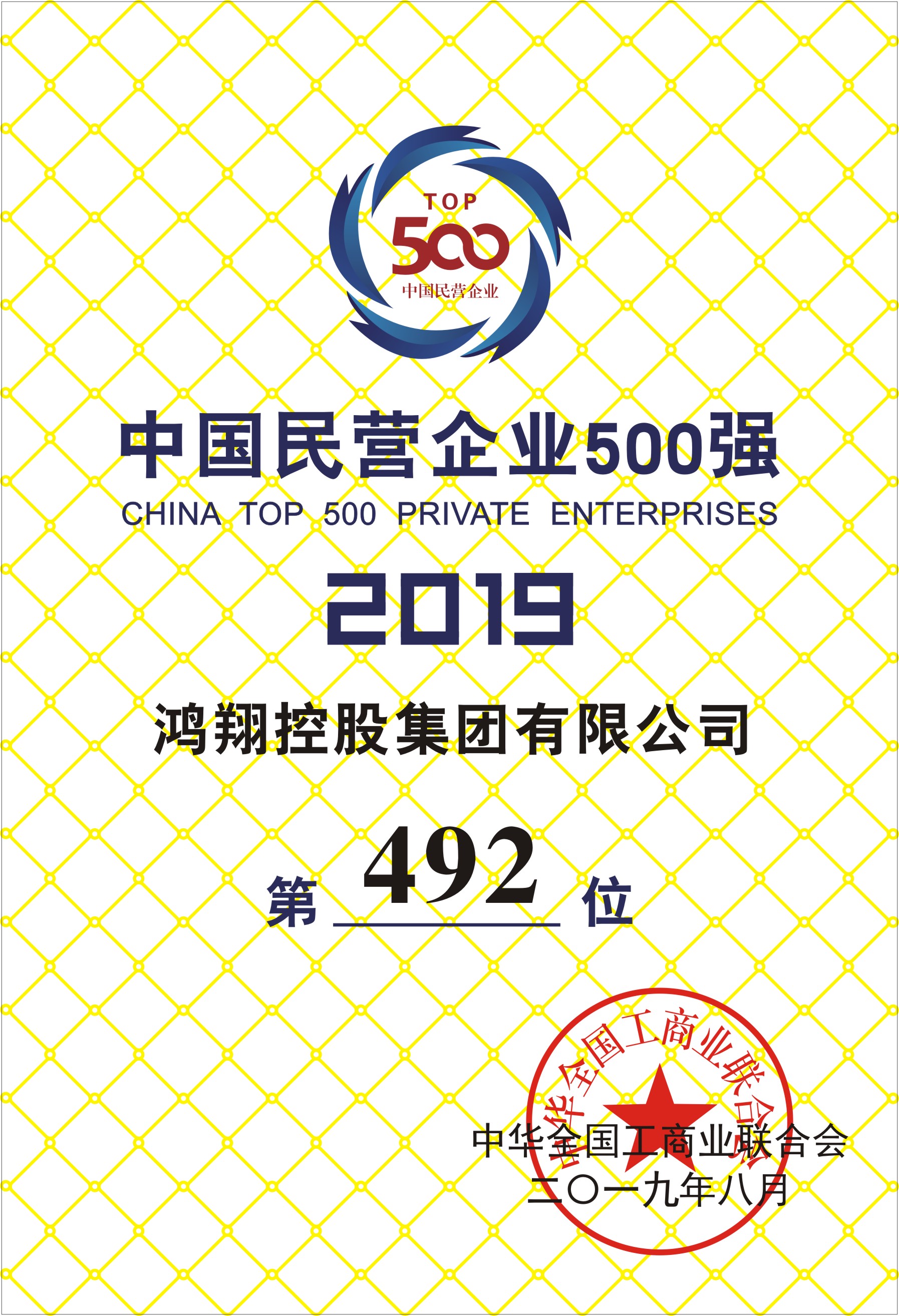 8月22日,2019中国民营企业500强峰会在青海省西宁市举行,会上发布了2019中国民营企业500强系列榜单,鸿翔控股集团有限公司荣登中国民营企业500强榜单,位列第492位。这是继“2019浙江省民营企业100强”称号后,又一业界殊荣,鸿翔集团是海宁本土唯一一家双双上榜的企业。