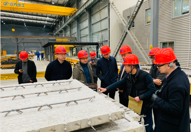 随后,访问团参观了鸿翔远大装配式建筑基地,作为浙北地区一流的装配式建筑基地,公司从2019年6月份试运营以来,取得了近亿元的销售额。总经理鲍平强从生产环节的各个流程介绍了公司先进的装备和技术,对工厂生产情况,PC构件制造工艺流程等方面做了详细汇报。