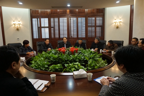 12月23日下午,绍兴市政协副主席、工商联主席何小玲,绍兴市工商联副主席钱雪峰,绍兴市工商联秘书长、组宣传处处长李国忠携同绍兴市多位企业家莅临鸿翔,嘉兴市委统战部副部长、市工商联(总商会)党委书记叶伟达,海宁市政协副主席吴关佳,海宁市工商联主席鲁枫陪同调研。 首先,董事长姚岳良陪同绍兴市领导及海宁市领导参观了“姚岳良工作室”,并向何主席一行详细介绍了工作室的开展计划、工作制度、工作职责、政协委员的组成等,何主席一行对工作室的细节工作表示非常肯定和赞许。 随后,姚总就这七个月来工作室所做的一切工作作了详细汇报,并对鸿翔建筑业、房地产业以及现代服务业这三大产业作了简单介绍。何主席表示,早就听说我们姚总的政协工作室在当地不仅为民解忧、还为中小型企业排忧解难,此次是慕名而来,希望姚总的工作室以后一直能发挥好为人民群众服务的职能。