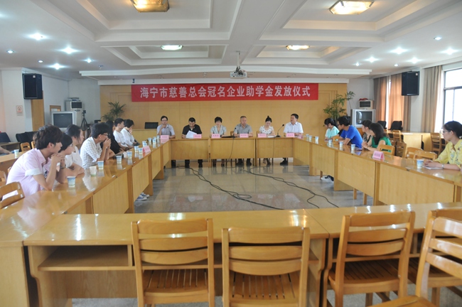 海宁市2014年度贫困大学生慈善助学发放仪式在市民政局礼堂举行。市慈善总会副会长兼秘书长吴永华主持了活动。助学冠名企业海宁皮革城、钱江生化股份有限公司、鸿翔控股集团、锦达股份有限公司参加了发放仪式。两位分别来自郑州大学、浙江师范大学的海宁籍优秀贫困大学生作了自强不息、励志学习、回报社会的发言。受集团董事长姚岳良委托,党委书记徐明华参加了发放仪式并代表多家冠名企业作了发言。海宁市人民政府副市长朱海英出席发放仪式并作重要讲话。